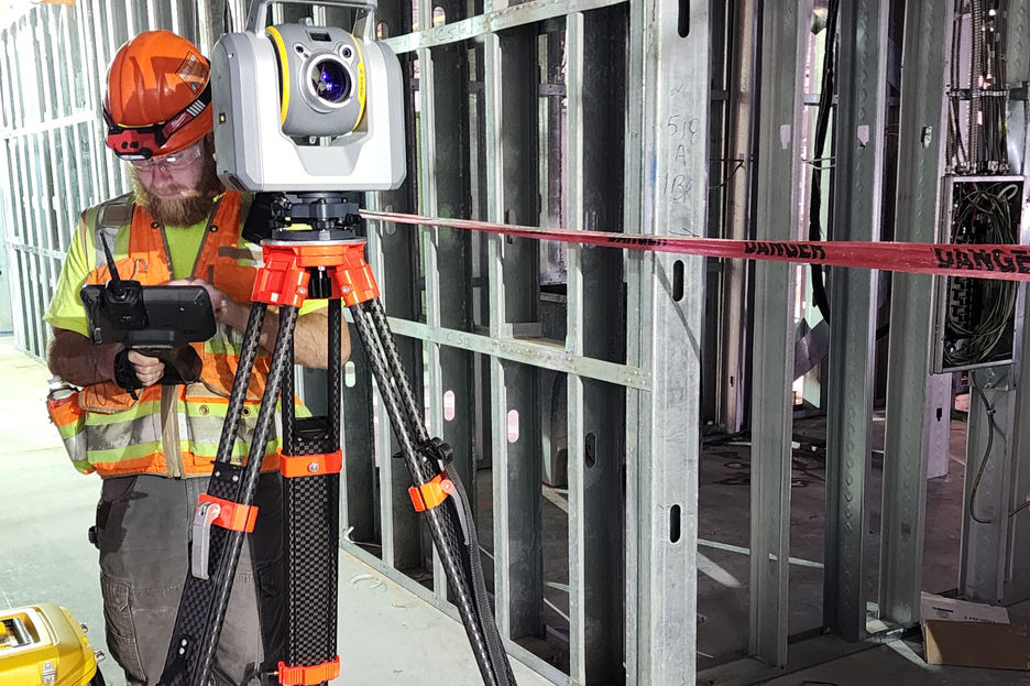 MJ provided construction stakeout services, including horizontal and vertical survey control along with high-definition laser scanning (LiDAR) for the new Asteri Building in downtown Ithaca, New York. The 12-story building has a 22,000 SF ground floor footprint with a conference center on the bottom three levels and 181 affordable housing units above totaling 200,000 SF. MJ was contracted at the start of the 9th floor construction to perform detailed high-density colored scans of each floor using a Faro Focus SWIFT system along with the VLX SLAM mobile mapper acquisition. The final point cloud data, and the 360° panoramic photos collected were deployed into our MJ4D web viewer. MJ4D is a SaaS (software-as-a-service) developed by MJ which enables clients to view, measure and interact with immersive digital twin data via a web browser. This data was used by project architects to verify walls and sleeves are aligned from floor to floor for utility installations. Survey layout was then performed immediately after slab pours for pre-fabricated wall panels.
